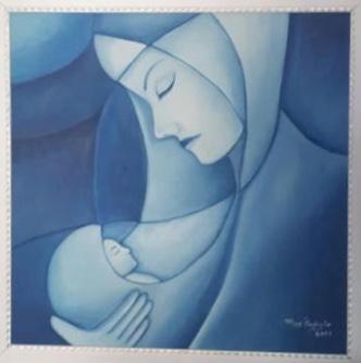 Descrição: Essa tela fiz no primeiro momento que me senti inspirada a pintar aquela que intercede por nós em todos os momentos, nossa Mãe e protetora Maria mãe de Jesus, em 2019, daí em diante não parei, cada vez mais me sinto incentivada a fazer mais telas de Nossa Senhora.