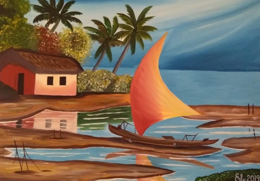 Descrição: Pintura óleo sobre tela, medindo 50x80.